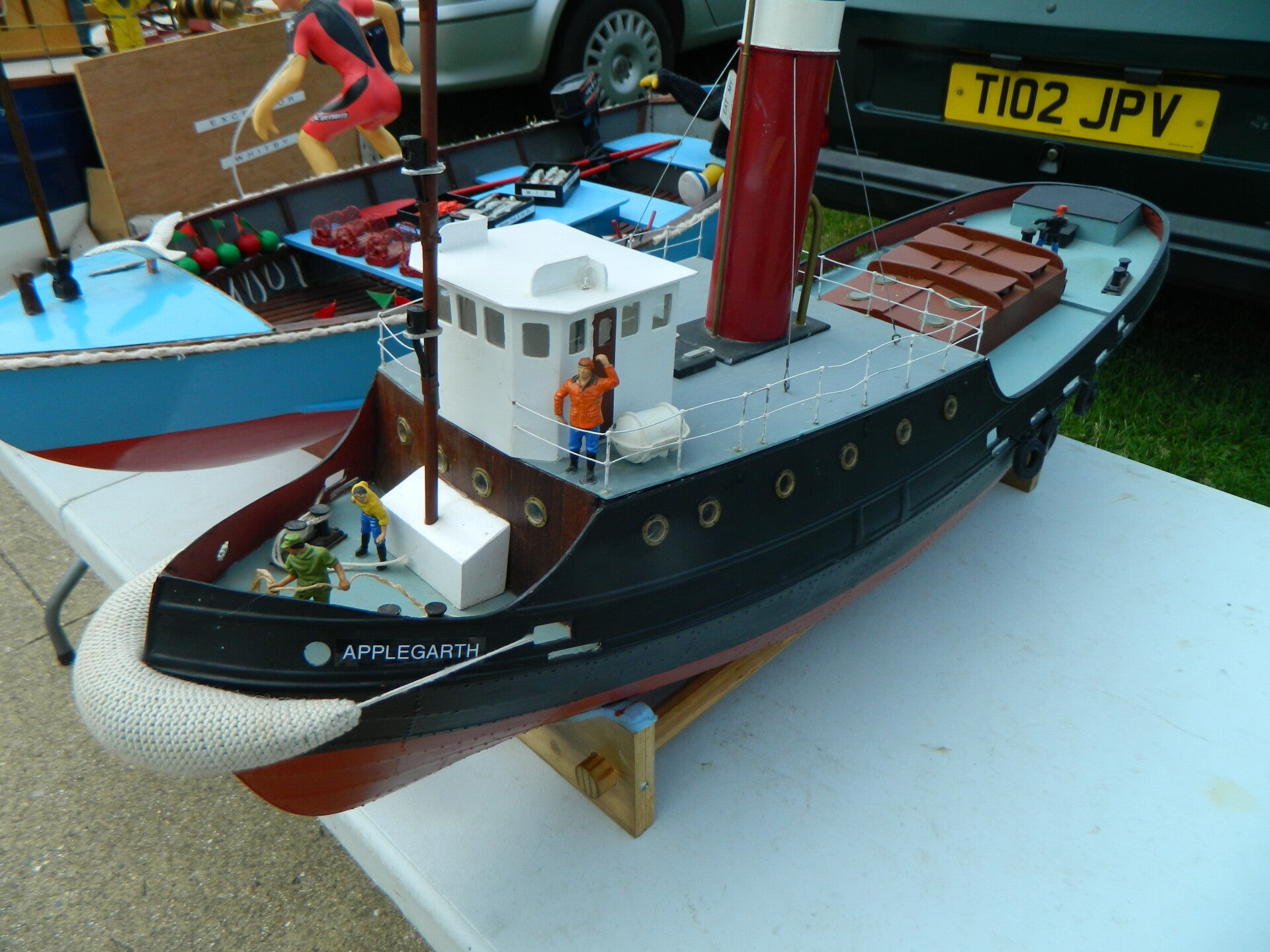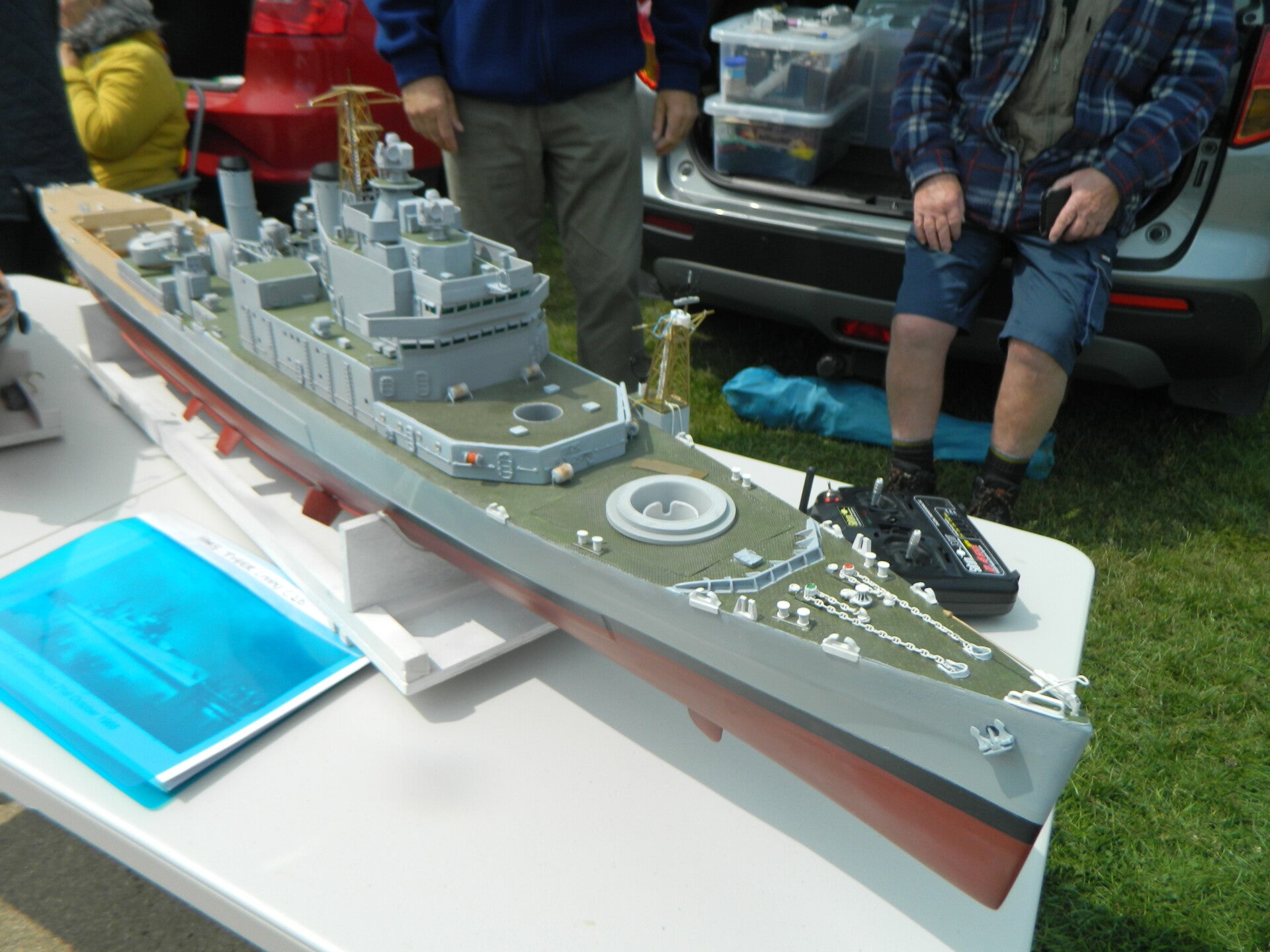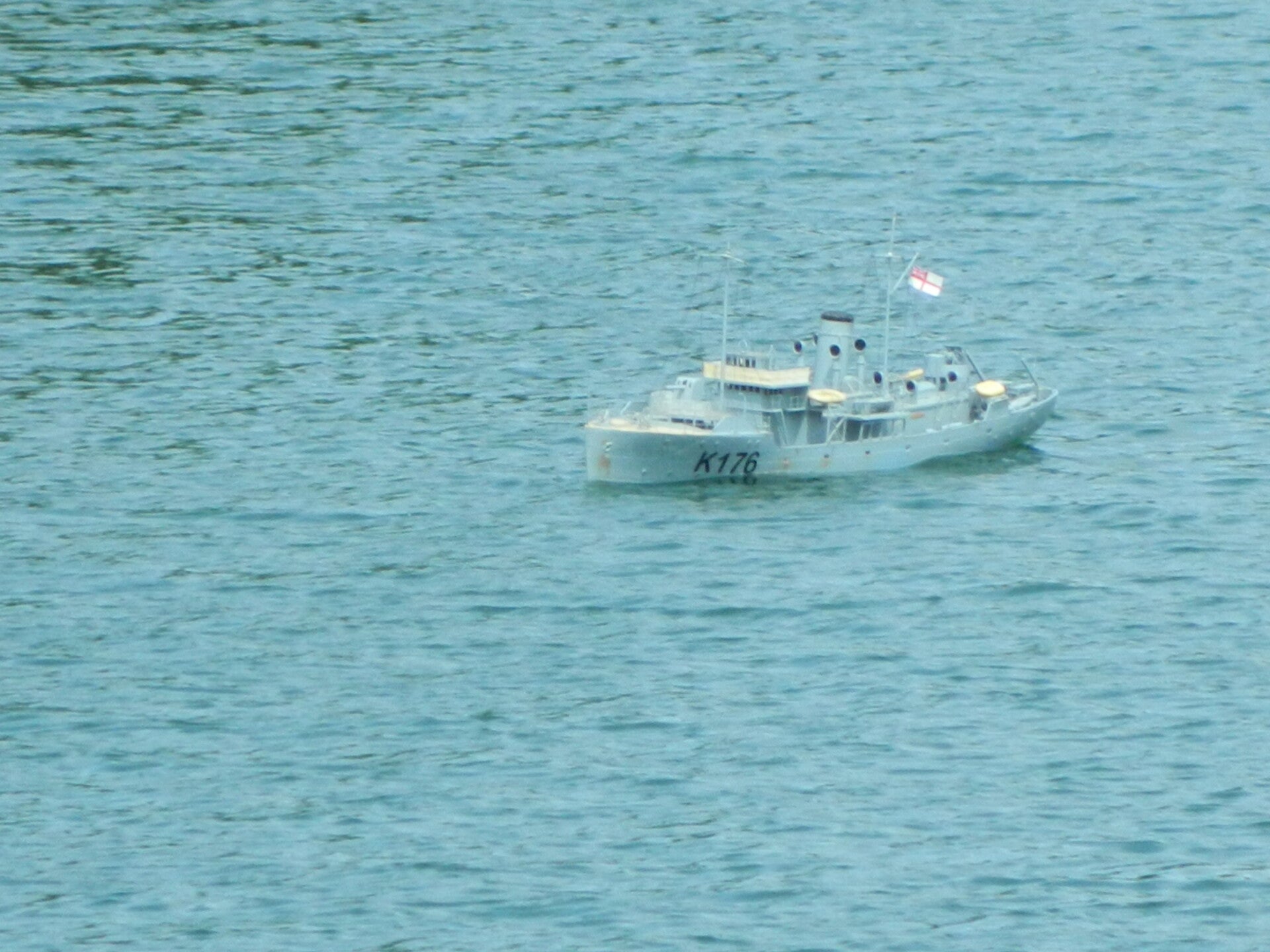Some very interesting boats here today - HMS Royalist, a Navy training ship model, and a fantastic "Bottle Boat" - made completely of recycled parts... sails are bin bags and hull is, well, bottles!